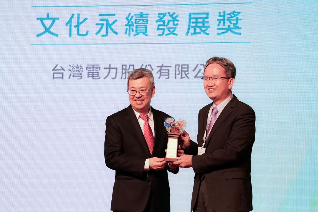 文化部今(16)日舉辦第16屆文馨獎頒獎典禮,台電第4度蟬聯文馨獎肯定,更是本屆唯一同時獲得「金獎」、「年度創意獎」與「文化永續發展獎」3大獎項的國營事業!台電表示,本屆文馨獎以「台電文創專案─退役變電箱及日月潭底泥再製計畫」榮獲「年度創意獎」,又以「台灣電力產業文化路徑規劃專案」榮獲「文化永續發展獎」。台電持續堅守穩定供電使命,也積極投入文化藝術、文資保存等領域,期盼透過電業文化底蘊展現臺灣文化生命力!