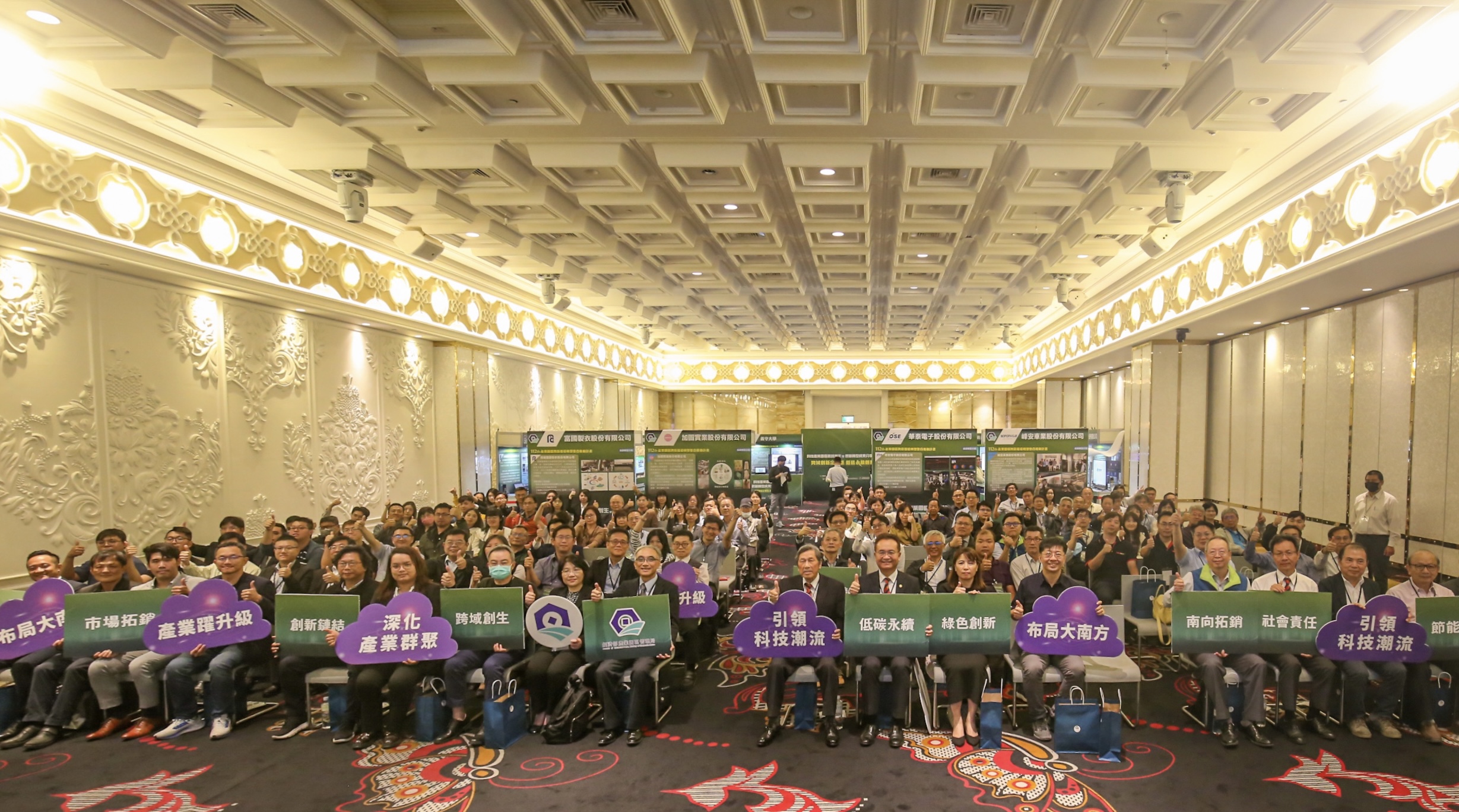 今日之成果分享交流會,現場除廠商之交流分享外,協同低碳計畫,更有12家廠商及2間學校現場擺攤,與參與之廠商先進共同交流成果,並分享導入應用之效益與做法,帶動與會先進之創新思考與減碳工具導入等議題思考。