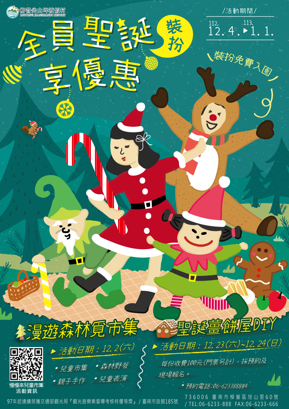 台糖指出,台糖尖山埤渡假村長期致力綠色低碳、環境友善旅遊,並積極推行及落實職業安全衛生管理,成效有目共睹,近期連獲雙獎肯定,為感謝及回饋消費者,推出住宿及入園等優惠,歡迎民眾把握機會,前來尖山埤體驗秀麗的自然景觀,以及多元豐富的遊憩設施。為迎接歡樂溫馨的聖誕佳節,尖山埤也將於12月份舉辦「漫遊森林覓市集」、「聖誕裝扮免門票」及「聖誕薑餅屋DIY」等系列活動,搭配園區滿滿的聖誕佈置,絕對讓大小朋友感受濃濃的過節氣氛,留下最難忘的美好回憶。