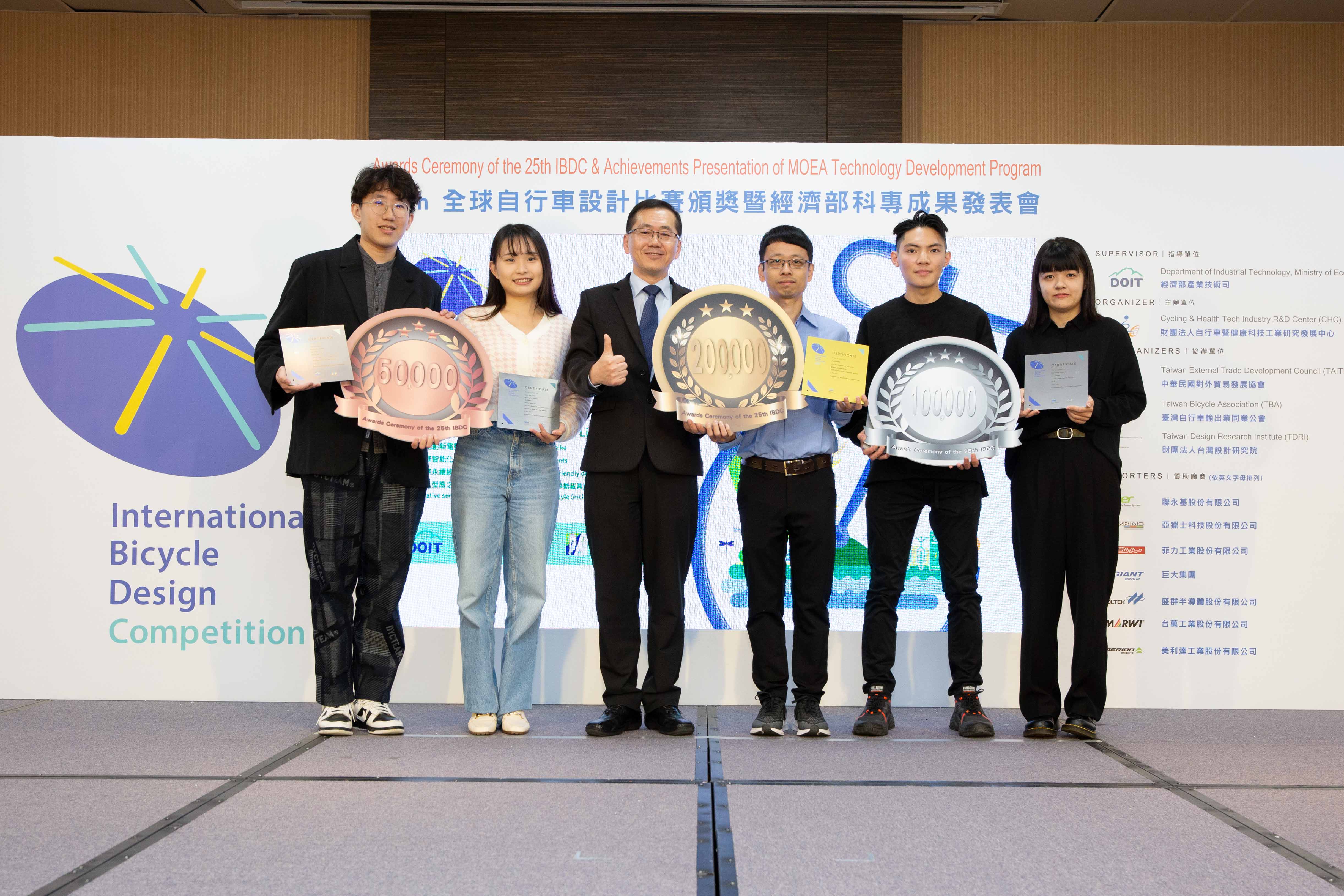 經濟部今(6)日舉辦第25屆全球自行車設計比賽(International Bicycle Design Competition, 以下簡稱IBDC)頒獎典禮,共有17個國家計181件作品參賽。本屆金牌獎由中國設計師張傑「BONUS通勤健身雙用單車」奪冠,銀牌獎「DUAL C環保滑步電動自行車」、銅牌獎「FILO旋轉艙概念車」則分由臺灣設計師江浩禎、廖千岳等奪得。典禮中亦同步發表兩項科技專案研發成果,第一項是大幅提升各方面功能的身障手搖車2.0,將可提供身障朋友更安全、健康的運動載具。另一項則是A+計畫補助台達開發的「電動輔助自行車(E-Bike)智慧動力系統」,尺寸大幅縮小但卻搭載強大的動力輸出扭矩,並因外觀整圓搭配吊架精簡,可大幅提升車架設計的自由度。