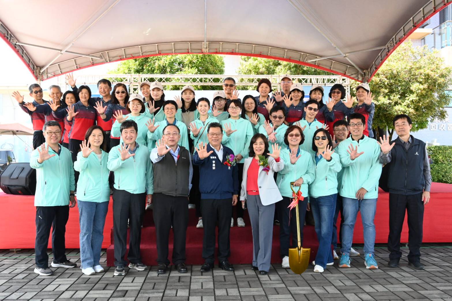 台水董事長李嘉榮、總經理李丁來等人除了在植樹現場拿起鏟子栽下原生毛柿的樹苗,並親自澆水外,更和與會嘉賓共同體驗葉拓,在台水五十週年固碳救地球活動葉拓紀念布上留下珍貴的綠色足跡,表達台水對環境永續經營的關懷理念。