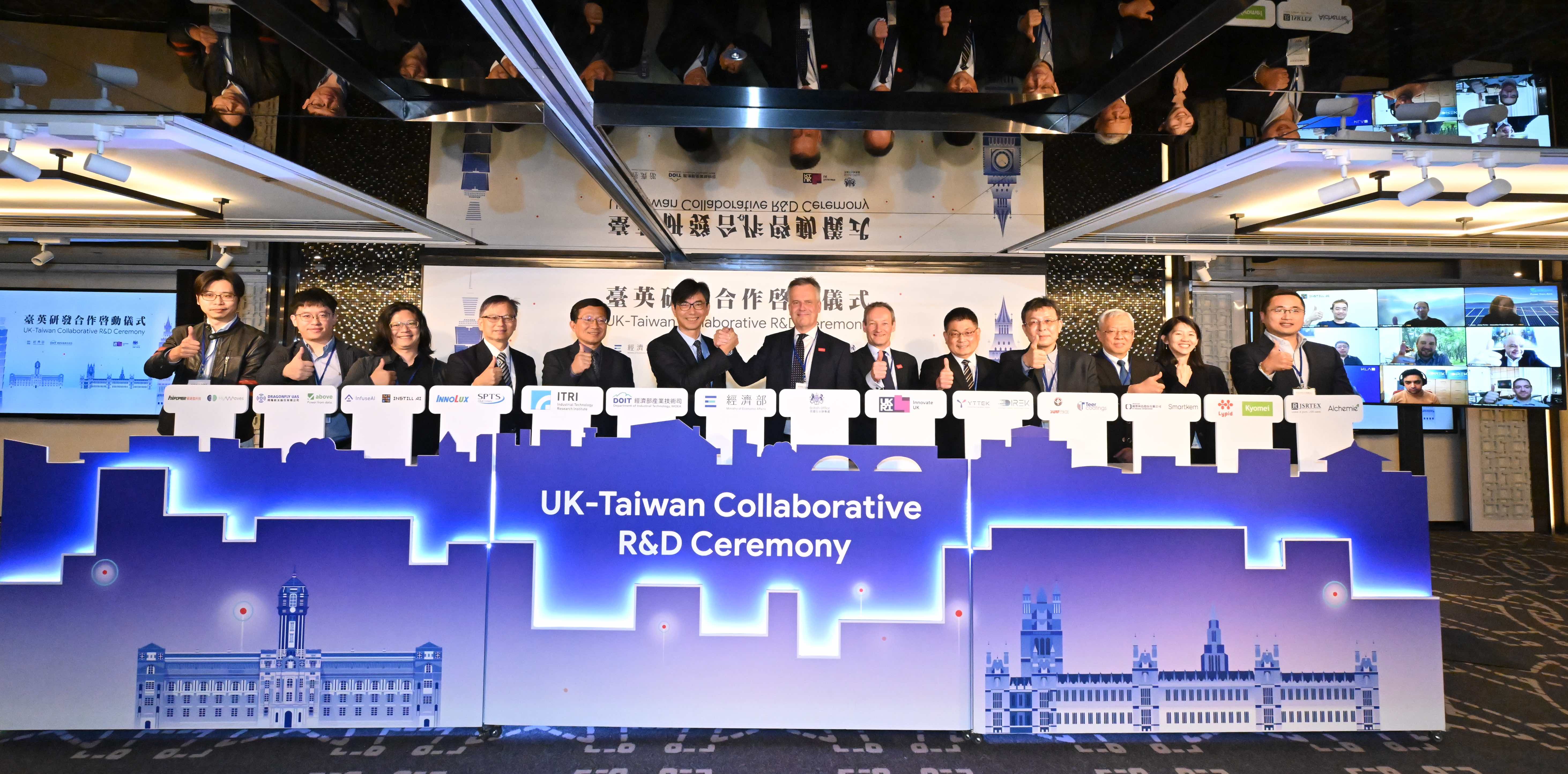 經濟部今(20)日攜手英國科學創新及技術部(DSIT)於臺北晶華酒店共同舉辦「臺英研發合作啟動記者會」,共同宣布臺英雙方未來2年投入新臺幣6.5億元,共同推動雙邊之產業科技研發。臺方參與企業有群創光電、円通科技、永源科技等廠商,英方參與單位有全球半導體大廠科磊子公司SPTS、英國知名半導體材料商Smartkem,及牛津大學、伯明罕大學、薩里大學等名校,共同投入化合物半導體、下世代通訊、綠色能源科技、生成式AI、低碳綠氫等領域共九案的合作,未來可望開創超過新臺幣百億元產值。
