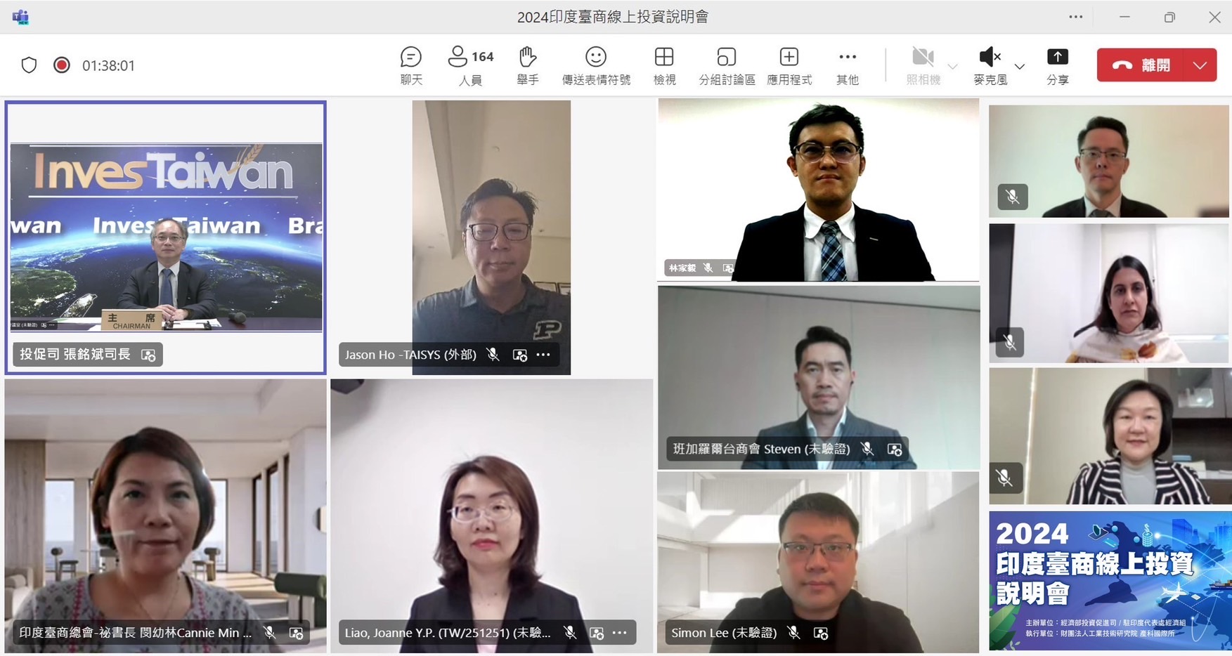 近年受美中競爭、疫情及地緣政治等因素影響,帶動全球供應鏈移轉重組,印度逐步成為全球企業與台商布局之重要製造基地。為協助台商掌握印度投資環境與最新稅務法規資訊,經濟部投資促進司與駐印度代表處經濟組合作於今(16)日舉辦「2024印度台商線上投資說明會」,安排安侯建業聯合會計師事務所(KPMG)及工研院專家,聚焦近期印度法令、租稅優惠及產業聚落等進行深入剖析,另特別邀請印度台商總會、德里、班加羅爾、清奈等台商會代表分享當地營運經驗,線上出席人數超過百位,吸引包含力積電、Gogoro、鴻海、健和興、中探針等業者參加。