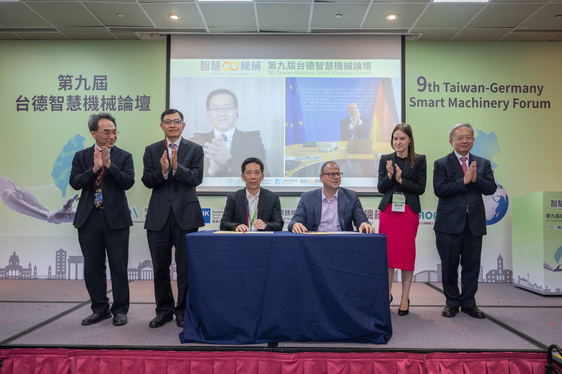 論壇中邀請了台灣智慧自動化與機器人協會絲國一理事長以及德國經濟辦事處蘭依樺首席代表暨處長從產業界的角度分享未來發展與雙邊合作等見解,專題演講部分邀請了所羅門、達明機器人、台達電等單位,分享我國智慧機械技術發展與轉型之應用實績及成果; 德方則由Siemens、Botfellows、Trumpf等領先企業,分享智慧製造之近年發展技術與展望,包含德國及臺德共同合作之經驗和商機。本次論壇並促成達明機器人公司與德國Botfellows公司簽署「智慧協作型機器人系統整合技術合作與市場拓展」合作備忘錄,結合臺灣的協作型機器手臂與德國的即時工廠虛實整合監控軟體打造完整的工業機器人平台,大幅提升人機協作的安全性以符合歐盟法規,另外也藉由AI來讓機器手臂完成生產線上各式各樣的工作,共同合作能發展更多應用商機。