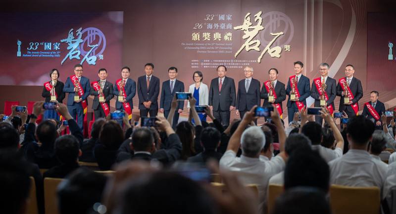 隨後,副總統頒發「國家磐石獎」及「海外臺商磐石獎」予13家獲獎企業代表。