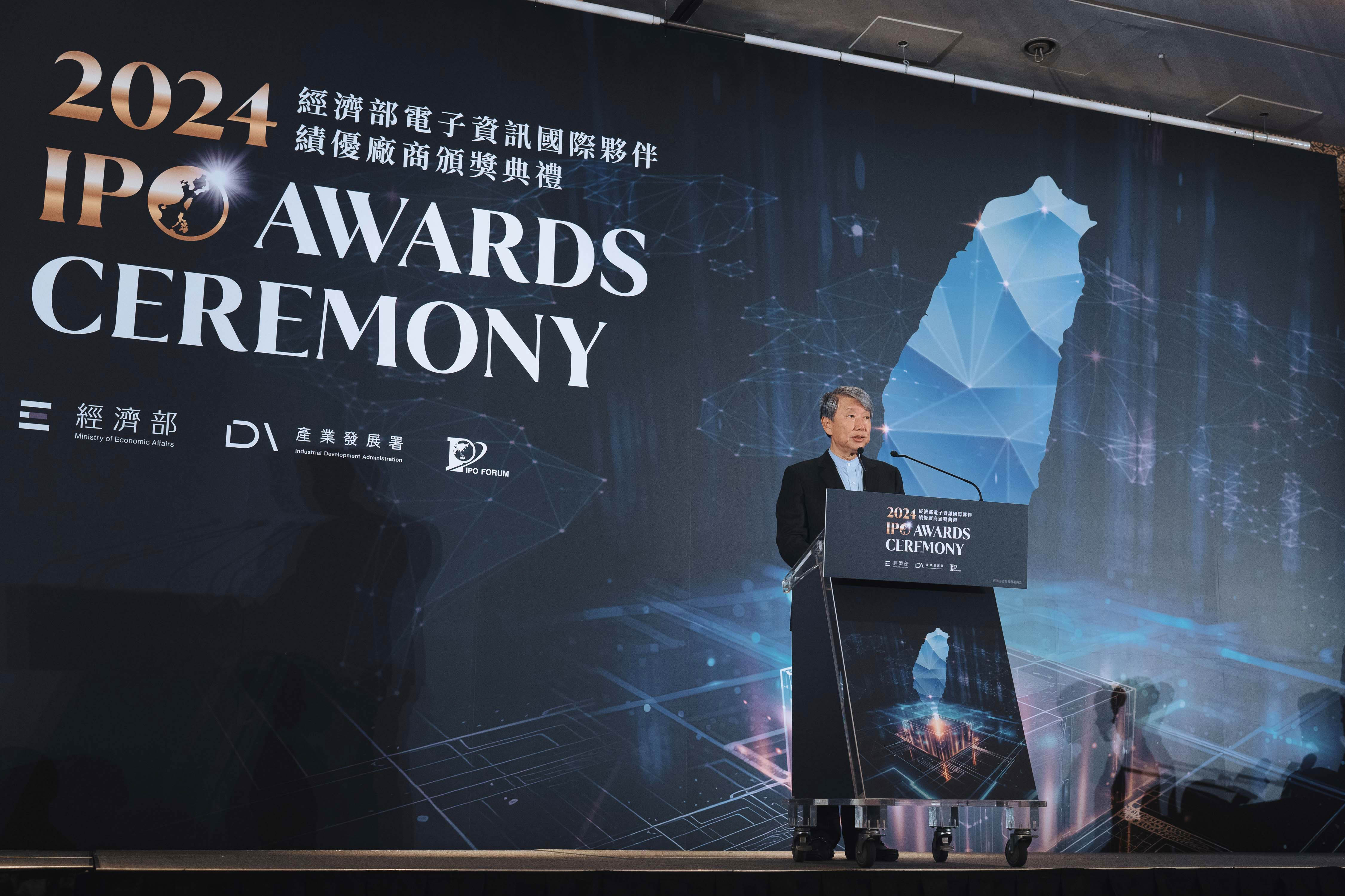 「2024 經濟部電子資訊國際夥伴績優廠商頒獎典禮」(IPO Awards Ceremony)14日舉行,由經濟部郭智輝部長親自頒發技術加值夥伴獎等 7 大獎項予22家來自美國、德國、日本等國際大廠。郭部長強調臺灣面對全球供應鏈重組,深化跨國夥伴互利模式正是當務之急,期待透過與外商的合作,一起掌握地緣政治變化所帶來的商機。