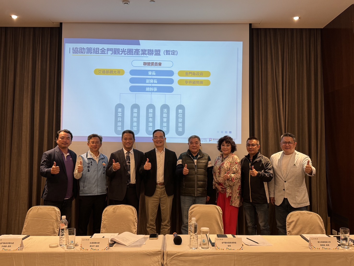 交通部觀光署黃怡平組長表示,交通部觀光署持續透過多場共識會議及籌備會議,邀集各界商討金門觀光發展策略與執行方向;亦結合公、私部門及團體資源,提供跨區域、跨產業的觀光交流媒介並擴大行銷能量。本次會議所推舉出的核心成員,皆為在地知名企業及產業公協會代表,最瞭解當地的需求,期望未來可以結合聯盟成員專才,打造更多獨具特色的旅遊模式,吸引遊客來金旅遊,為產業創造商機。