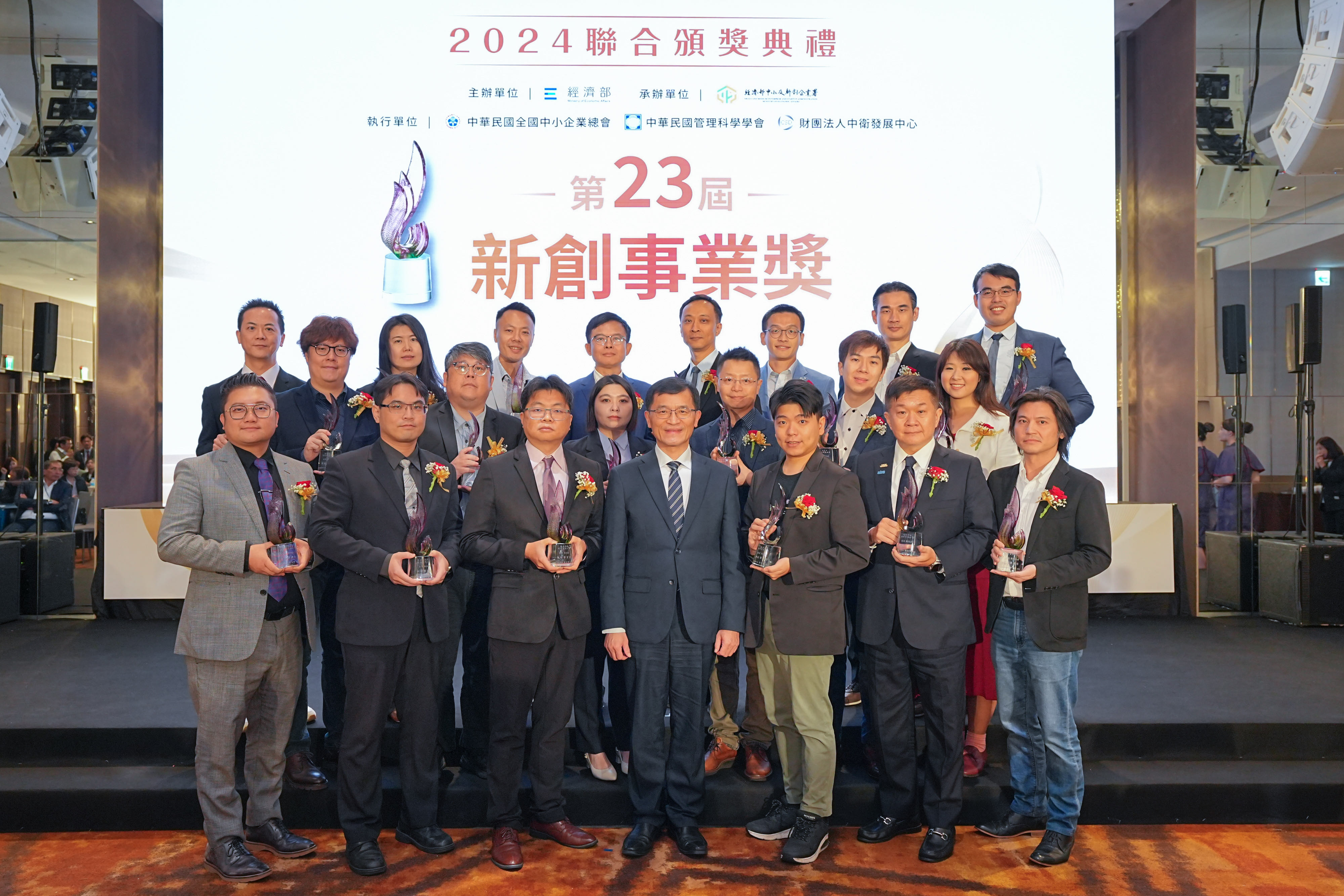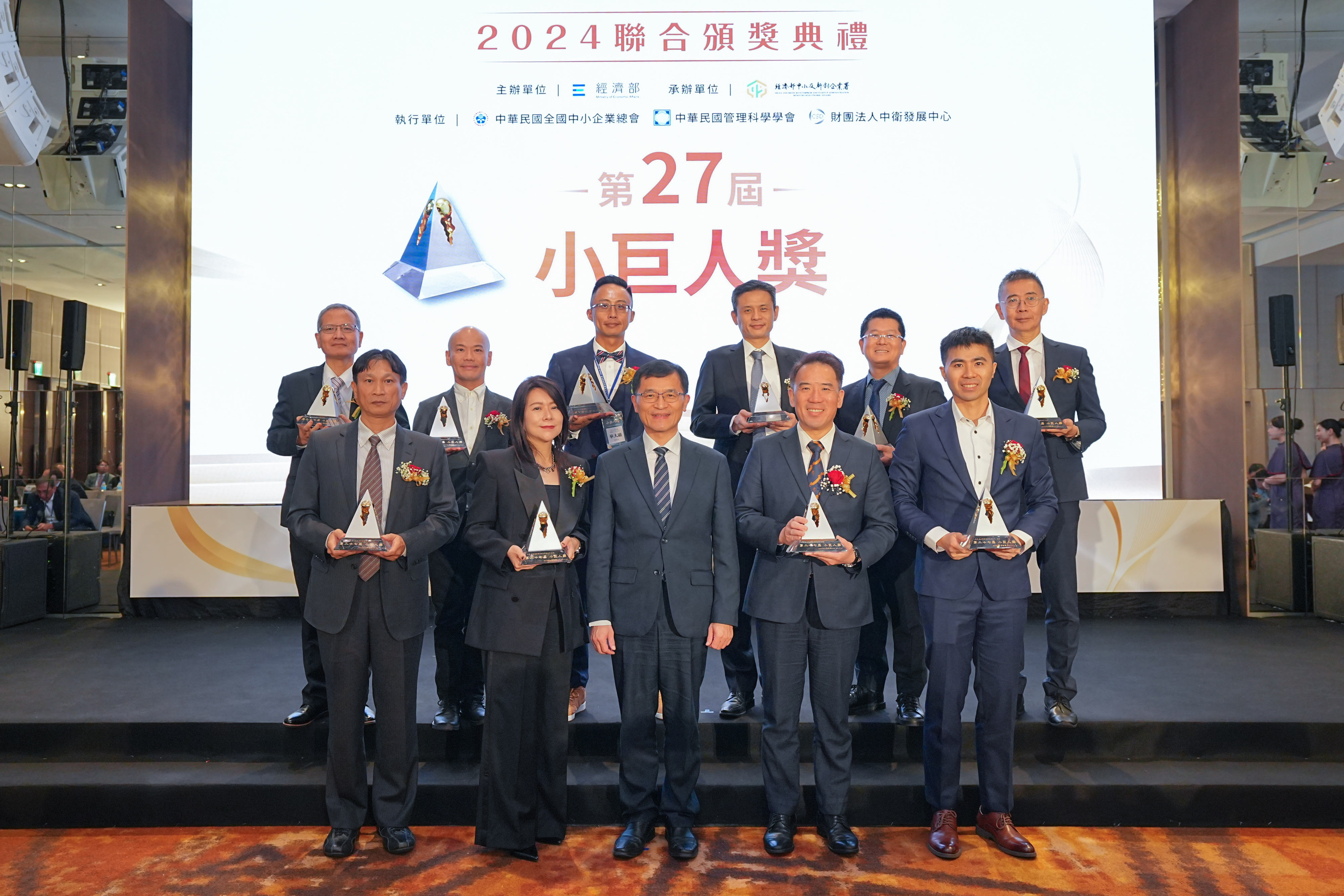 由經濟部主辦的「第27屆小巨人獎、第23屆新創事業獎暨第31屆中小企業創新研究獎聯合頒獎典禮」,於11月20日下午5時在格萊天漾大飯店舉行。經濟部次長何晉滄親自頒獎給各獲獎企業,並與現場嘉賓一同分享榮耀與喜悅。本次典禮共表彰48家優秀企業,分別為10家出口績優企業榮獲「小巨人獎」、20家具發展潛力的新創企業獲頒「新創事業獎」、以及18個創新標的獲得「中小企業創新研究獎」。