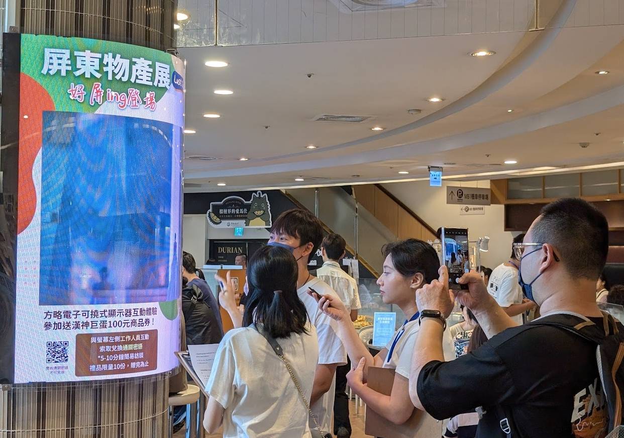 在高雄漢神巨蛋購物廣場,產發署協助方略電子開發的Mini LED輕薄、可撓式顯示技術。走進美食街,可以看到街內圓形柱體搭載環繞式動態顯示屏,150度清晰展示最新美食優惠與活動資訊,讓消費者隨時隨地掌握重要內容。同時,挑高空間設置的V型顯示屏不僅營造震撼視覺效果,還保留寬敞通透的氛圍,提升整體購物的舒適感,為消費者創造耳目一新的購物環境,帶來高達90%的顧客滿意度。