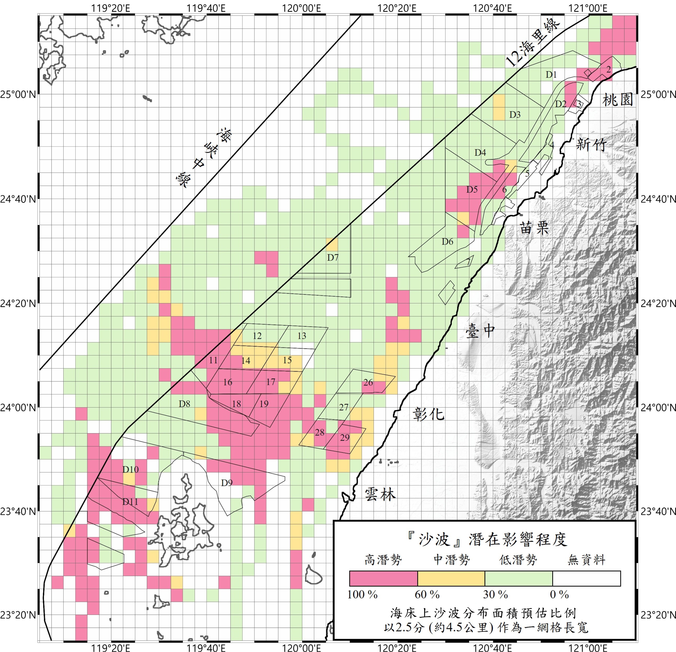 竹苗外海地質調查資料整合了多元探測技術,透過10處岩心鑽探、總長786公里的反射震測資料及總長317公里的底拖式高解析聲納探測,清晰呈現海底地形及海床下的地質構造與沉積特徵。竹苗外海地質環境複雜,風場開發廠商在了解或避開海域地質環境中,可能影響風機基礎穩定之地質作用與現象後,在後續工程地質調查之經費及時程都可大幅降低,可達到加速風機建置之效。因為調查結果揭示,竹苗外海廣泛存在具活動潛勢的地質構造,包括可能影響風機基礎穩定性的斷層與背斜褶皺等地層變形現象,以及地層內的流體特徵。而苗栗外海的新月型沙波(海底沙丘)移動會造成海床高程變動,可能會對風機基礎安全構成潛在風險。堅硬地層則主要分布於新竹外海,基礎施工時必須留意不均質的淺層海床特性。