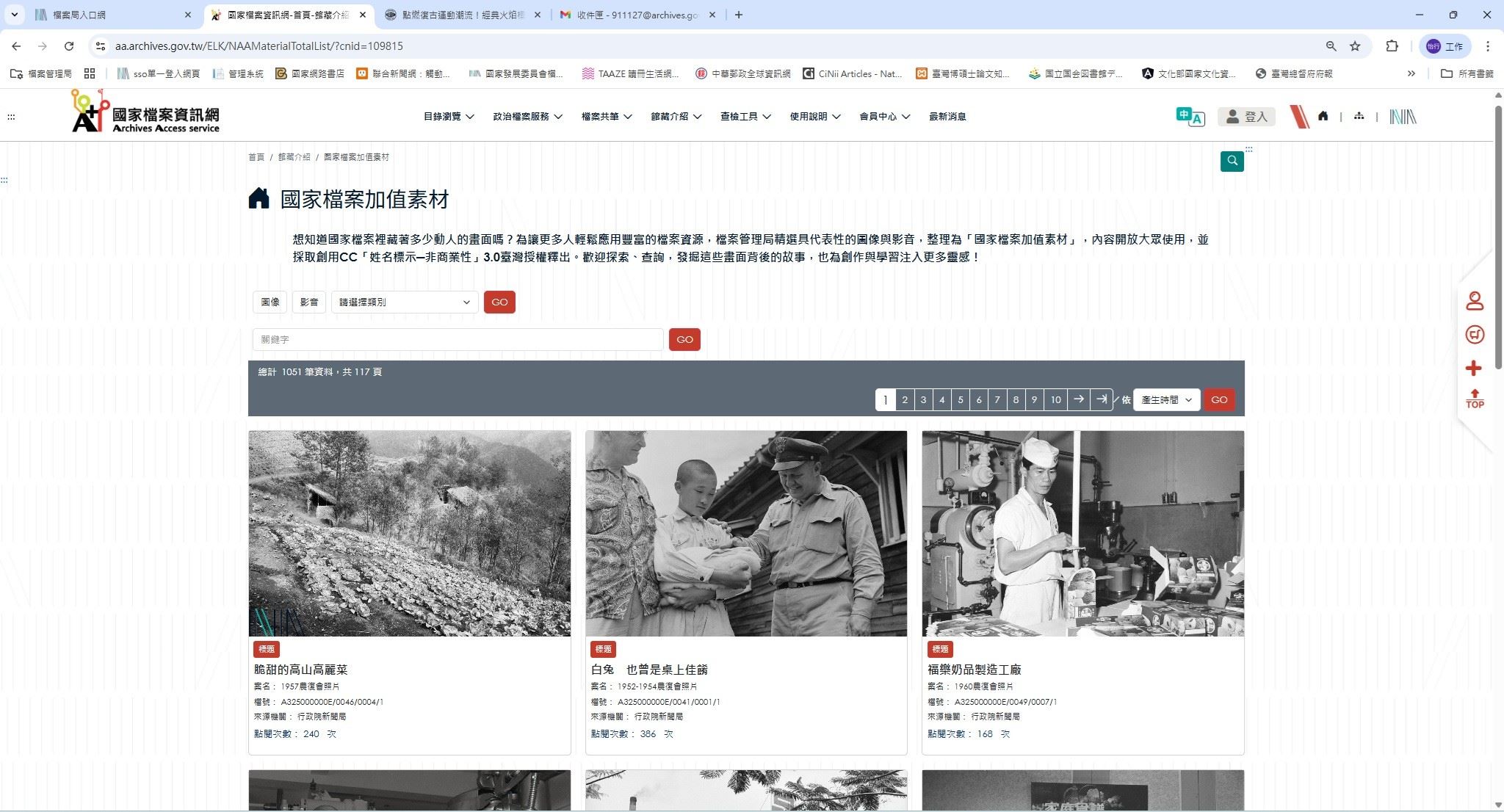 國家檔案加值素材:https://aa.archives.gov.tw/ELK/NAAMaterialTotalList