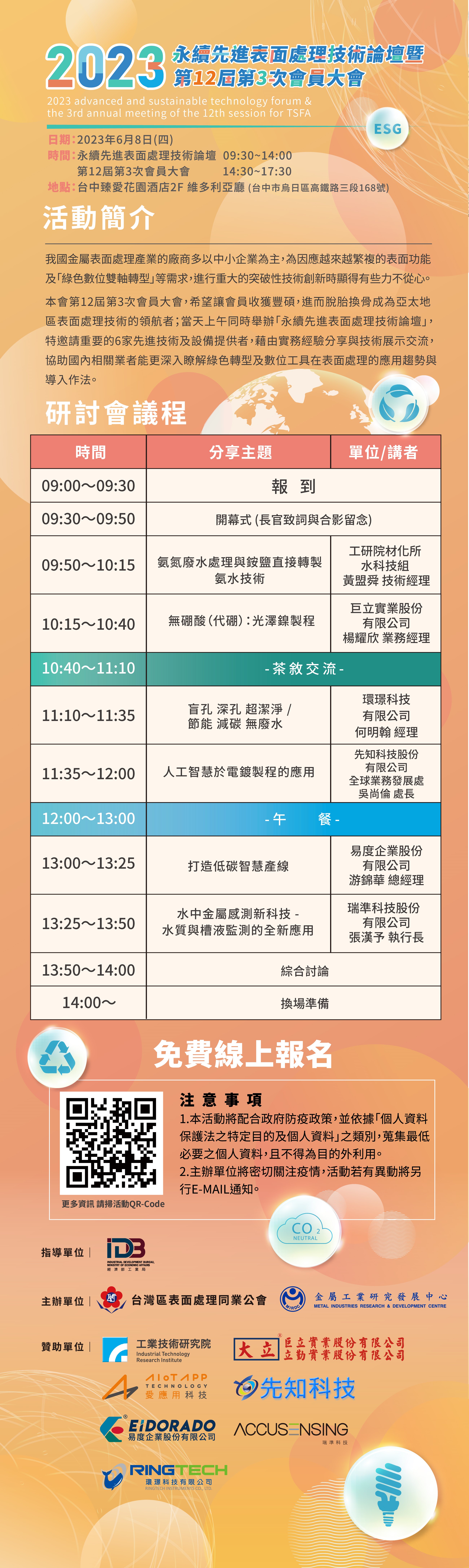 2023永續先進表面處理技術論壇 (2023-06-08 09:00 ~ 2023-06-08 14:00)