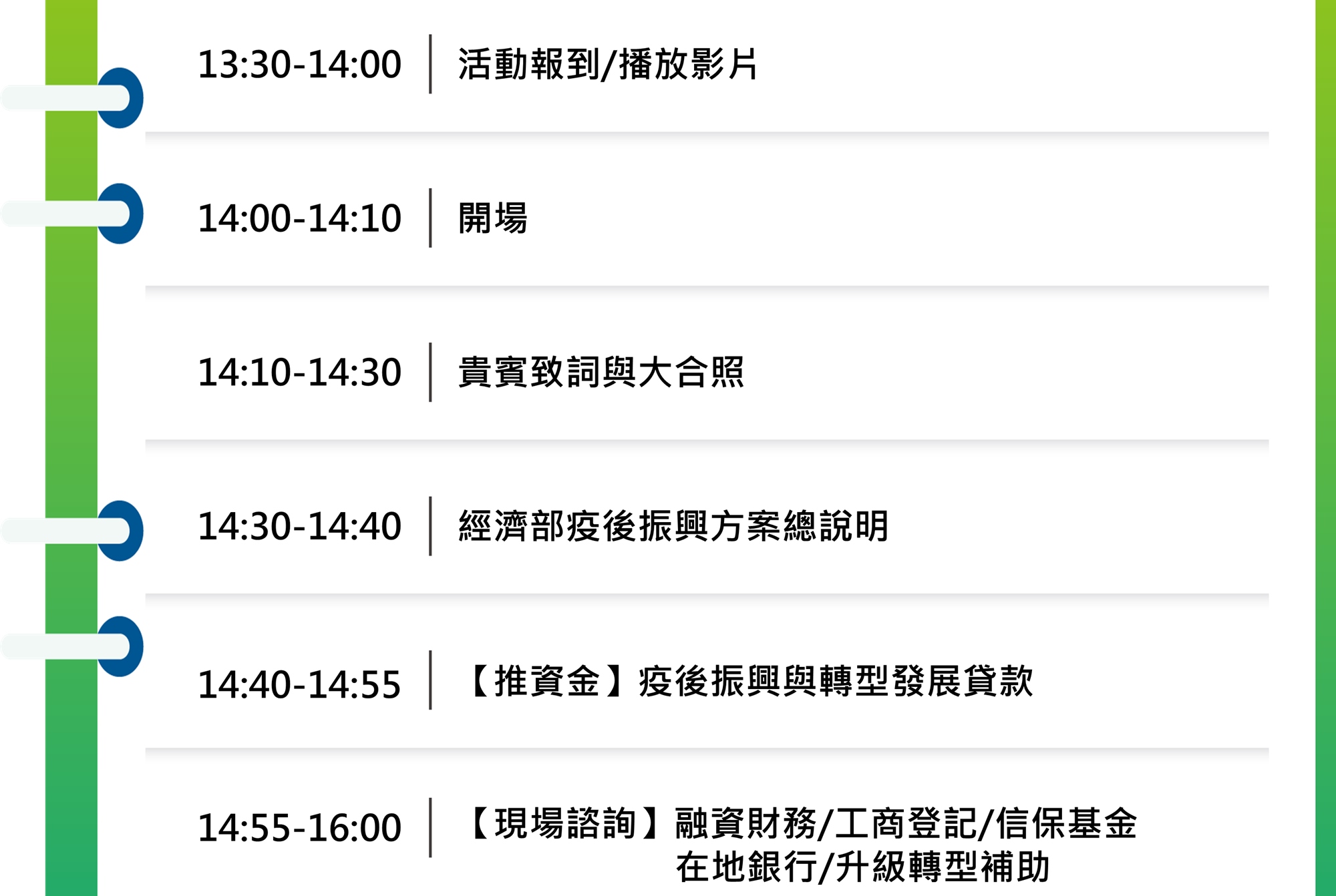 活動後提供精緻餐盒歡迎中小、微型企業朋友,或想要了解疫後振興方案內容一般民眾,立即報名