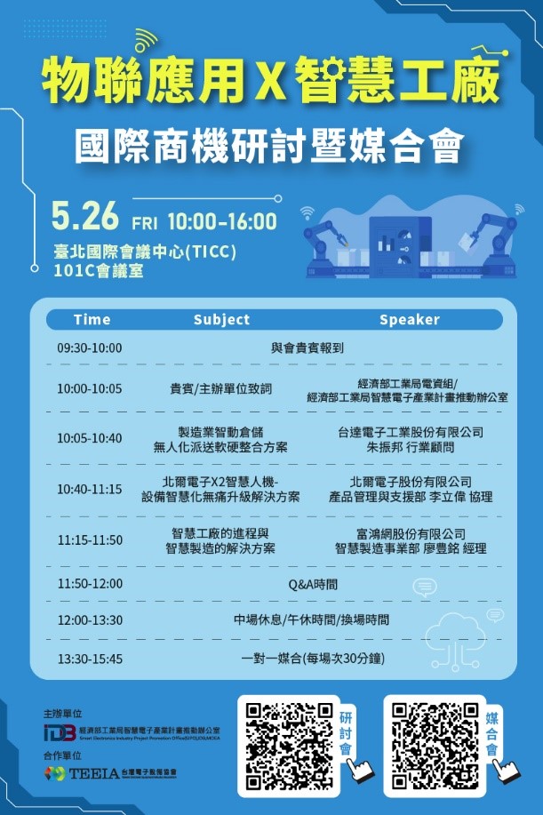 「物聯應用X智慧工廠」國際商機研討暨媒合會 (2023-05-26 10:00 ~ 2023-05-26 15:50)