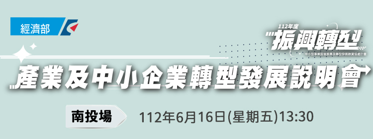 產業及中小企業轉型發展說明會(南投場) (2023-06-16 13:30 ~ 2023-06-16 16:00)