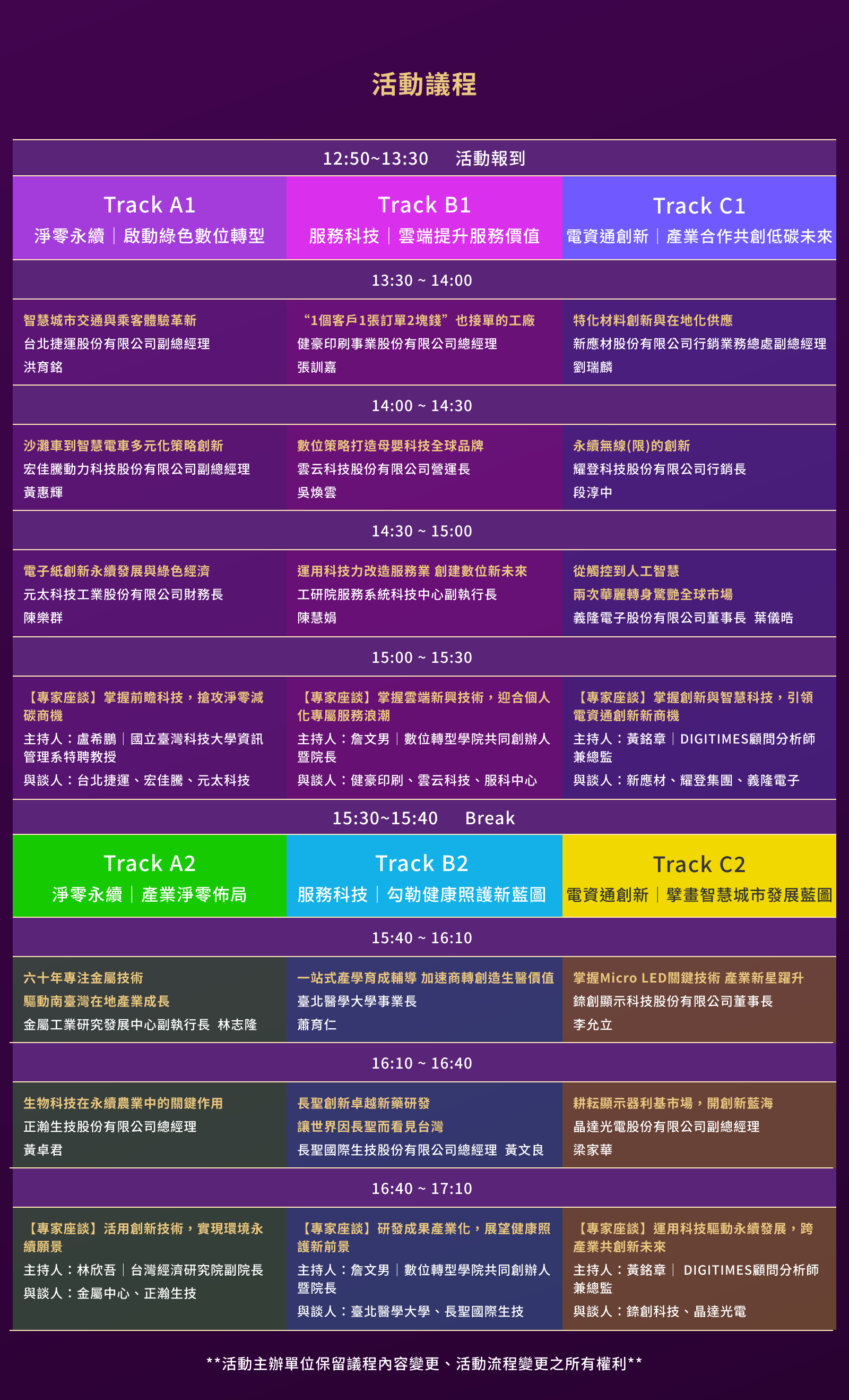 備註:分場主題地點及議程詳細資訊,請依官網資訊為主。