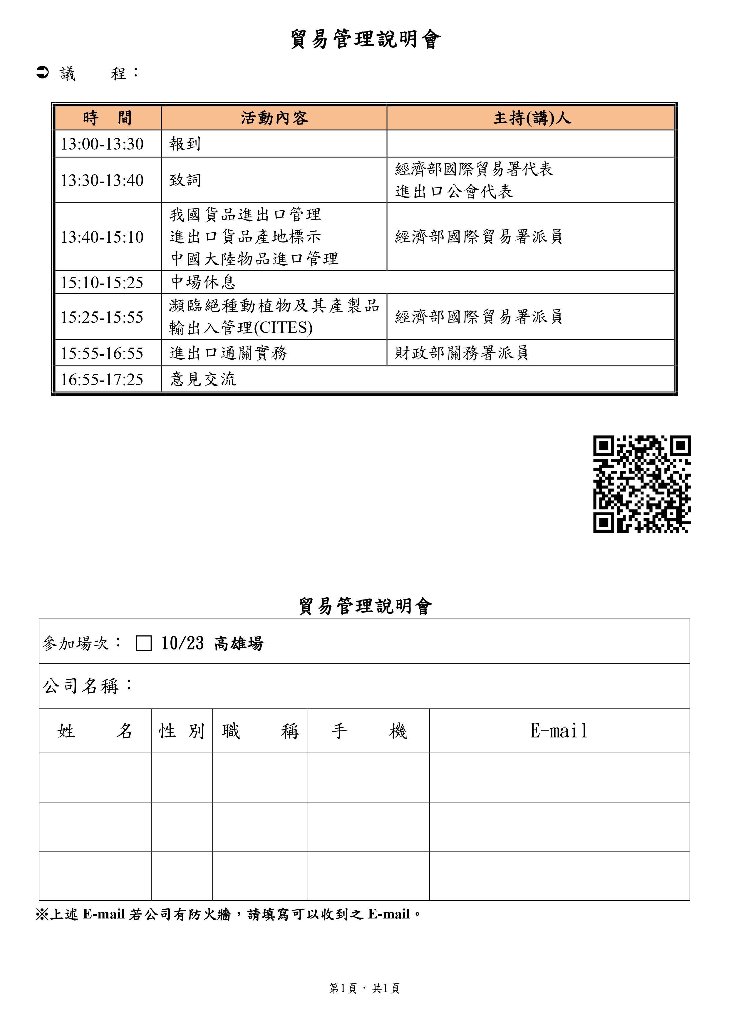 貿易管理說明會(高雄場) (2024-10-23 13:00 ~ 2024-10-23 17:30)