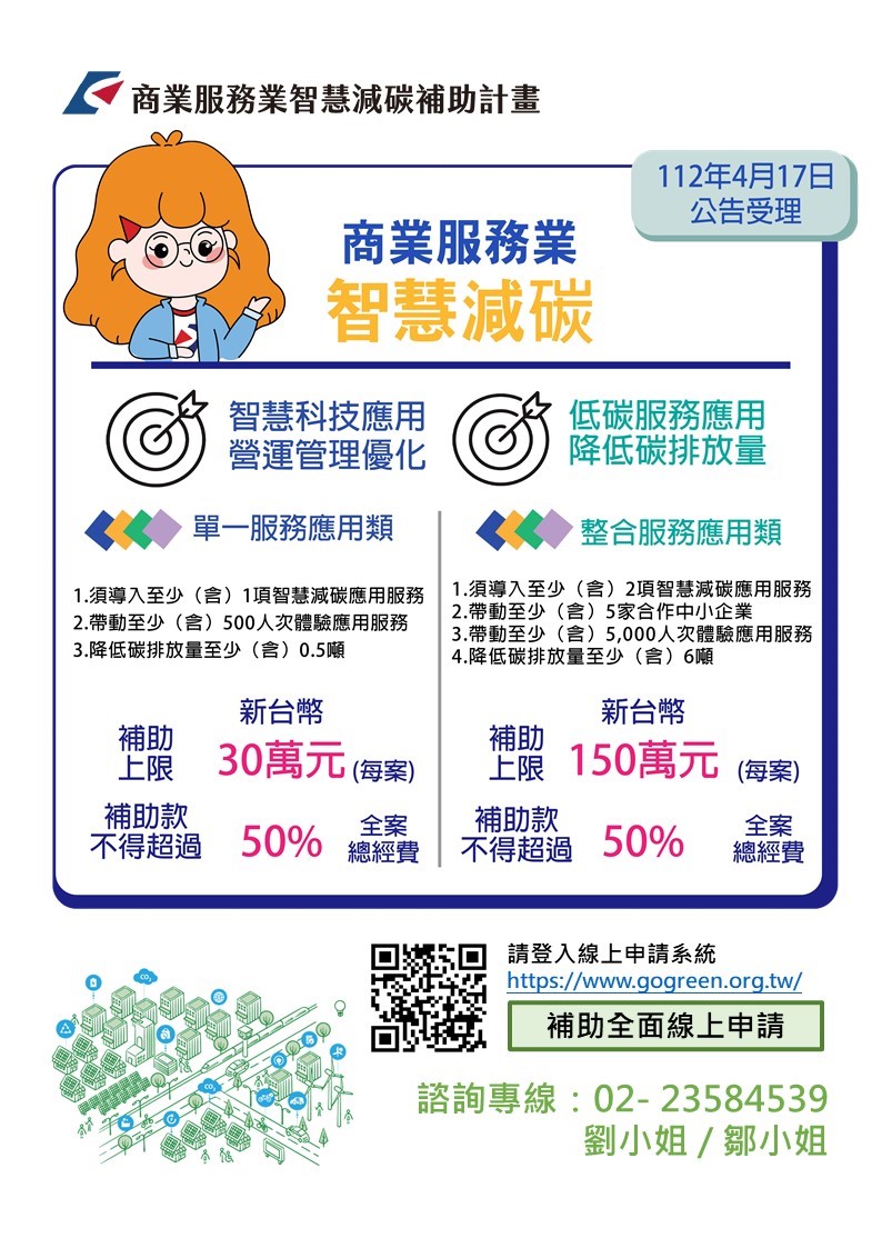 二、為協助中小型商業服務業推動減碳管理及永續發展,特推動商業服務業智慧減碳補助,為利補助計畫之執行,本部業以112年4月17日經商字第11204712430號公告旨揭計畫之申請須知,並於112年5月3日公告修正申請期間、計畫執行期程及適用旨揭須知之行業標準,以利商業服務業者提出申請。