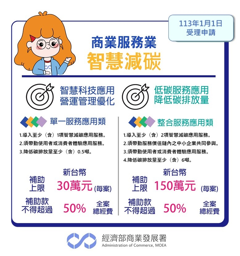 商業服務業智慧減碳補助計畫於113年1月1日上午9點開始受理申請。.png